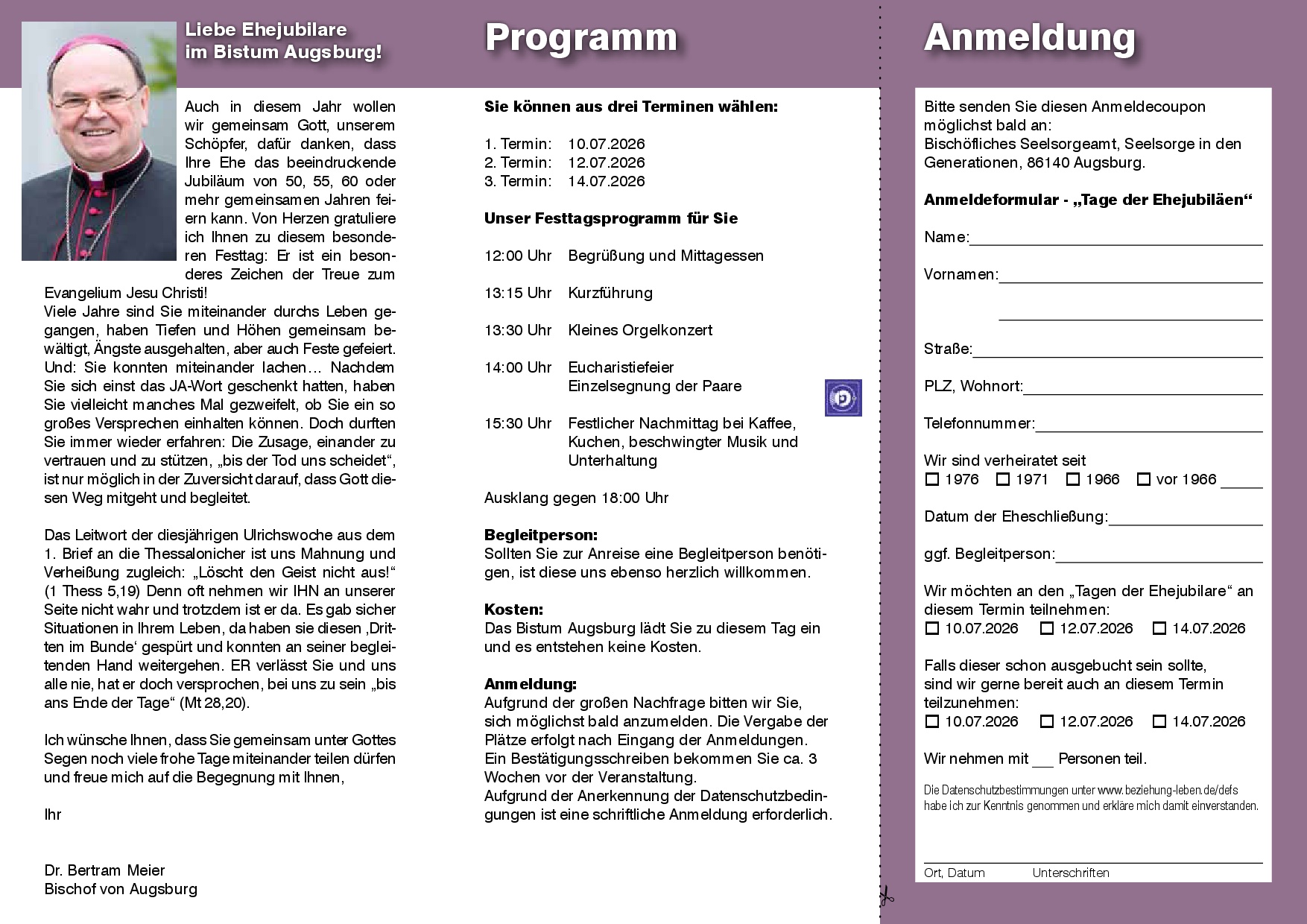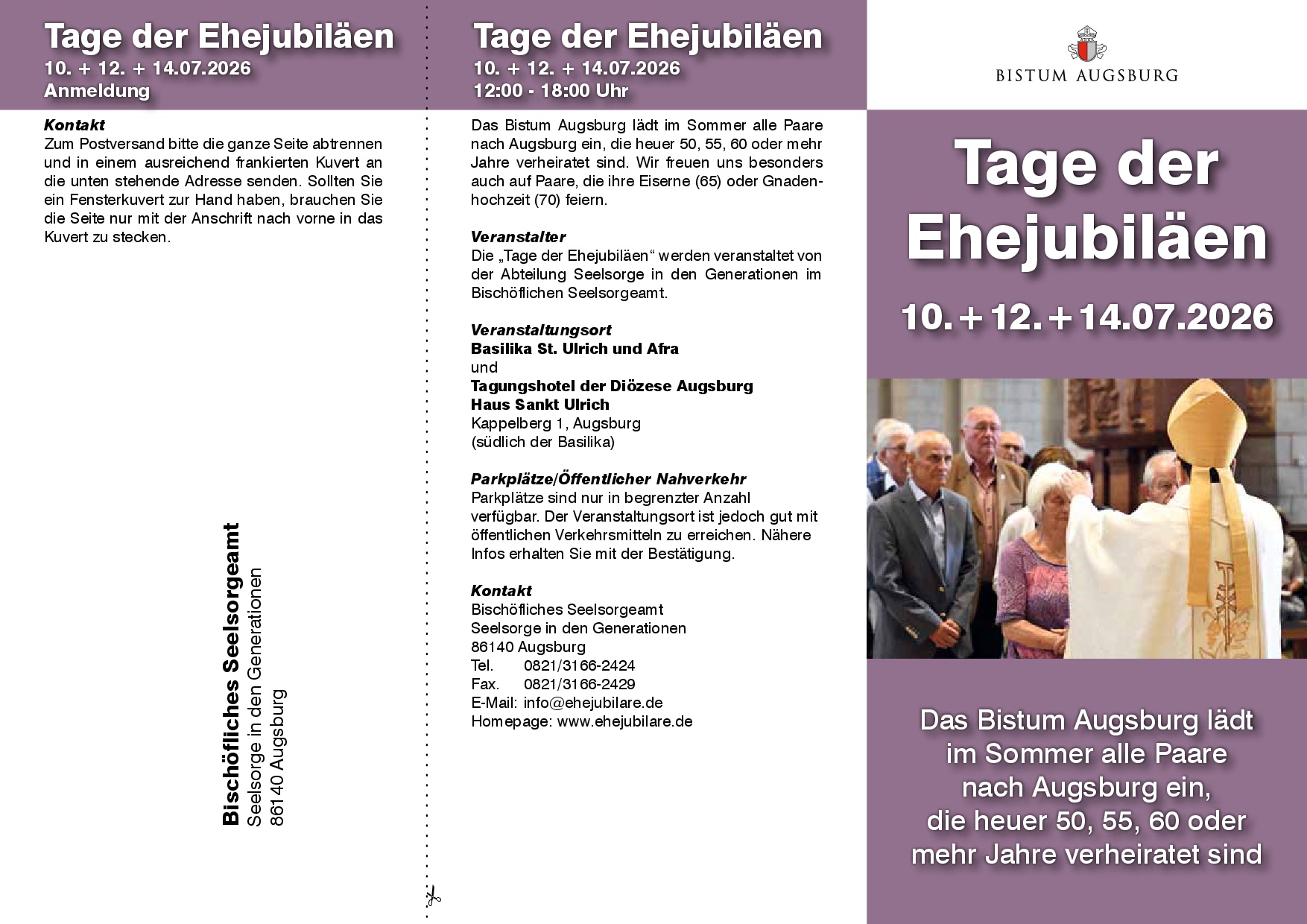 Flyer und Infos siehe auch: https://www.pg-neu-ulm.de/events/tage-der-ehejubilaeen-juli-2026-in-augsburg-bitte-anmelden-3/