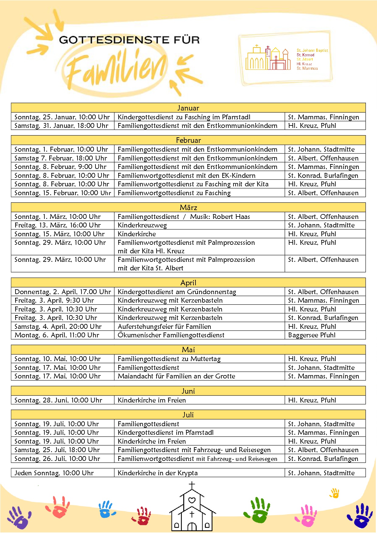 19. Januar – Übersicht Gottesdienste für Familien bis August