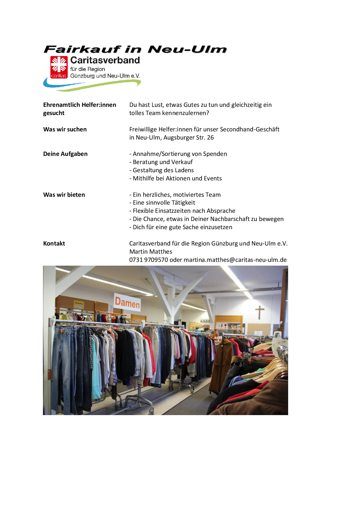 Caritas: Fairkauf – verkaufsoffener Sonntag + Helfer gesucht