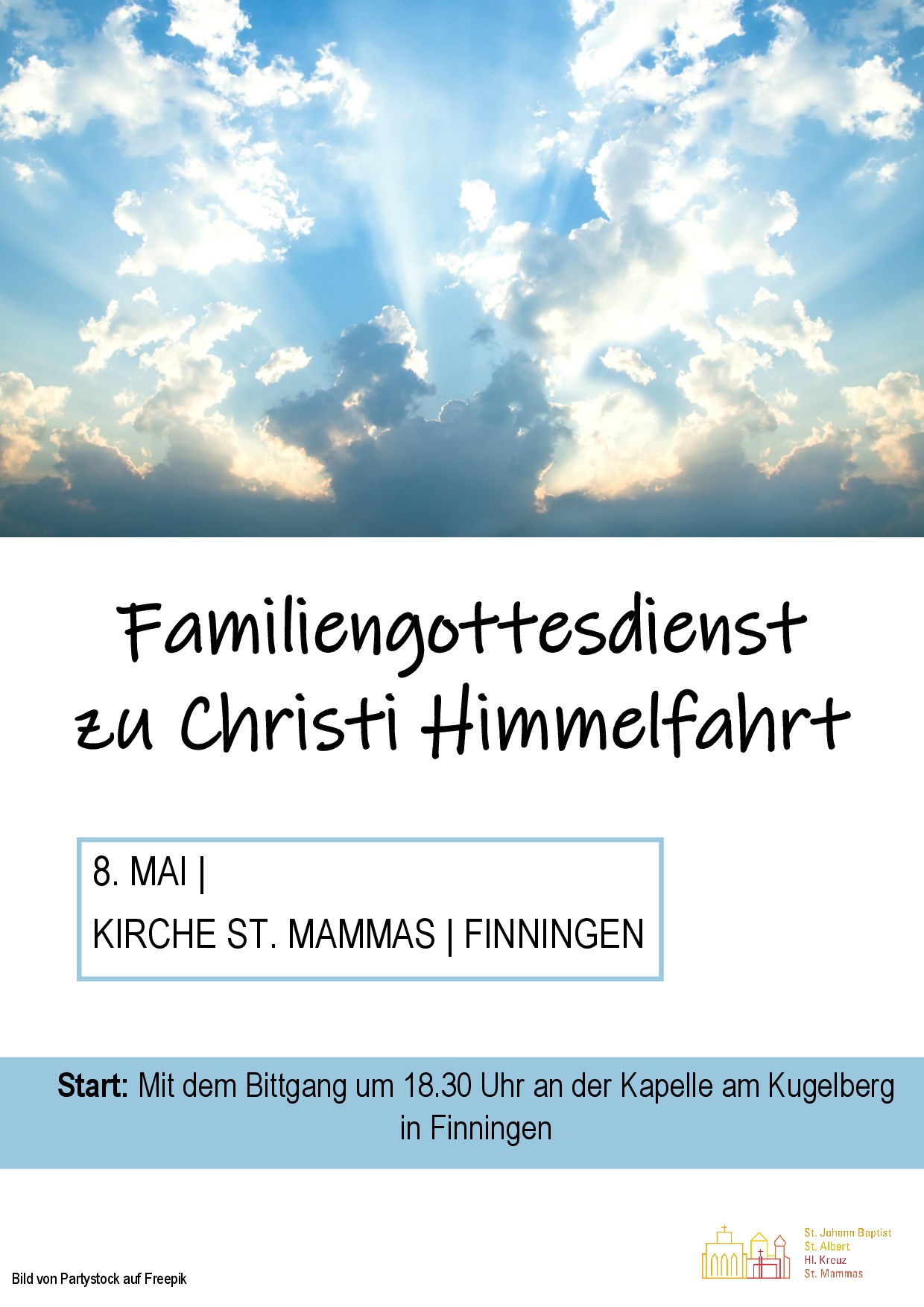 Familiengottesdienst in St. Mammas Wann Mi.. 08.05.2024 18:30 – 20:00 Zum Kalender hinzufügen ICS herunterladen Google Kalender iCalendar Office 365 Outlook Live Wo St. Mammas St.-Mammas-Weg 16, Neu-Ulm, 89233