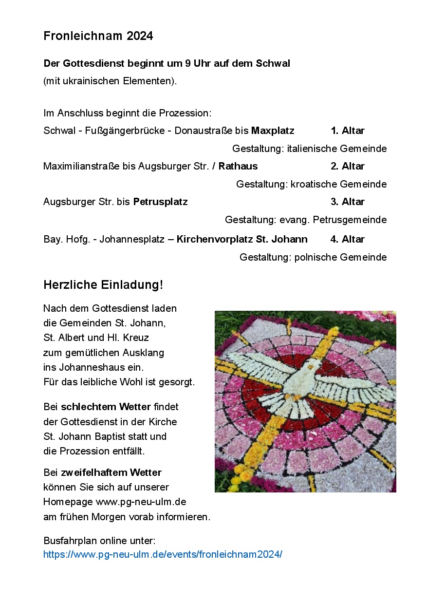 Aufgrund der schlechten Wettervorhersage wird der Gottesdienst um 9 Uhr in der Kirche St. Johann Baptist stattfinden!