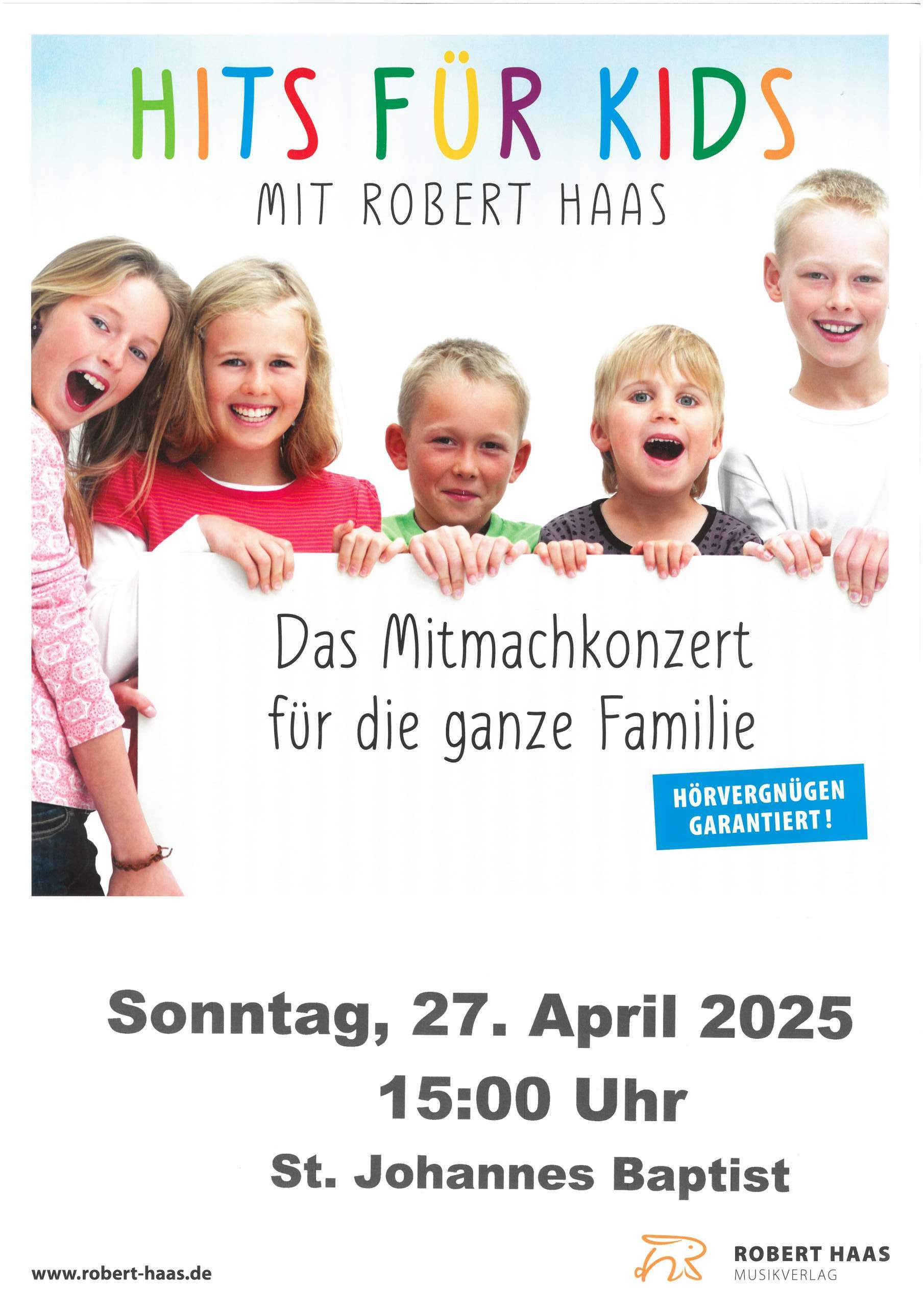 Hits für Kids – Mitmachkonzert in St. Johann Baptist Wann So.. 27.04.2025 15:00 – 16:00 Zum Kalender hinzufügen ICS herunterladen Google Kalender iCalendar Office 365 Outlook Live Wo St. Johann Baptist Johannesplatz 1, Neu-Ulm, Bayern, 89231