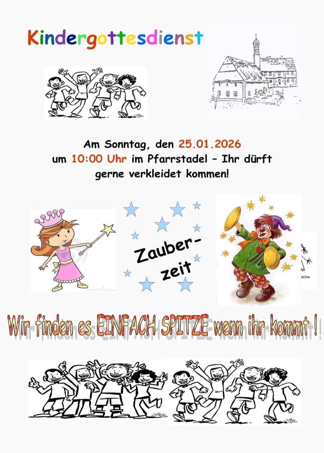 Kindergottesdienst zu Fasching in St. Mammas/Pfarrstadel Wann So.. 25.01.2026 10:00 – 12:00 Zum Kalender hinzufügen ICS herunterladen Google Kalender iCalendar Office 365 Outlook Live Wo St. Mammas St.-Mammas-Weg 16, Neu-Ulm, 89233