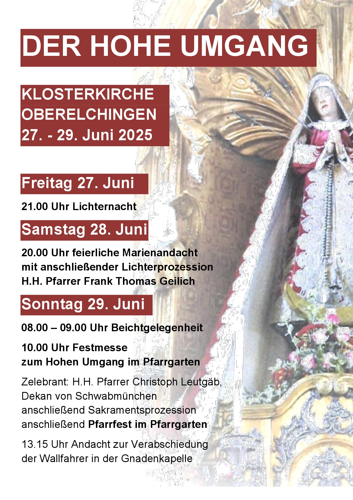 Kloster Oberelchingen: Der Hohe Umgang Wann Fr.. 27.06.2025 – So.. 29.06.2025 21:00 – 17:00 Zum Kalender hinzufügen ICS herunterladen Google Kalender iCalendar Office 365 Outlook Live Wo Kloster Oberelchingen Klosterhof 7, Elchingen, 89275