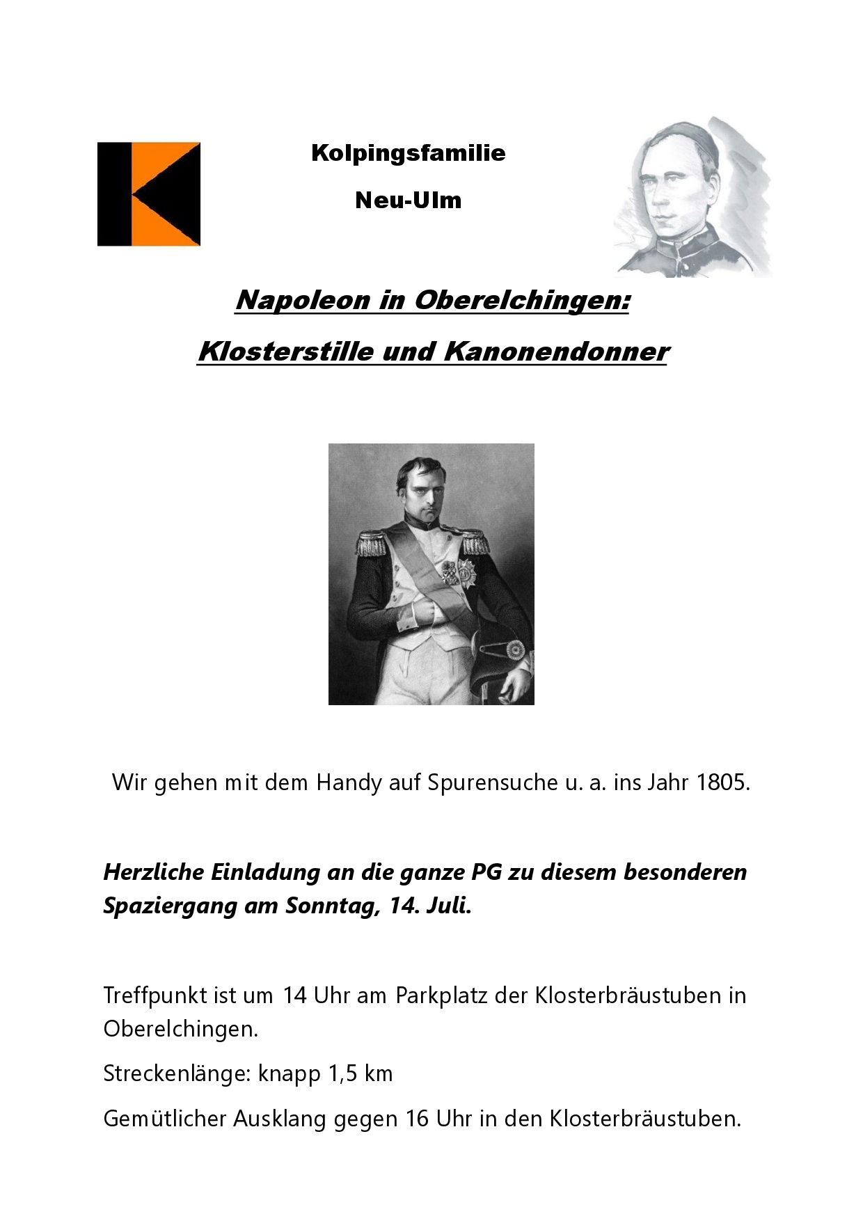 Für Jung und Alt: Lauschtour Oberelchingen; Ausklang gegen 16 Uhr in den Klosterbräustuben Oberelchingen.