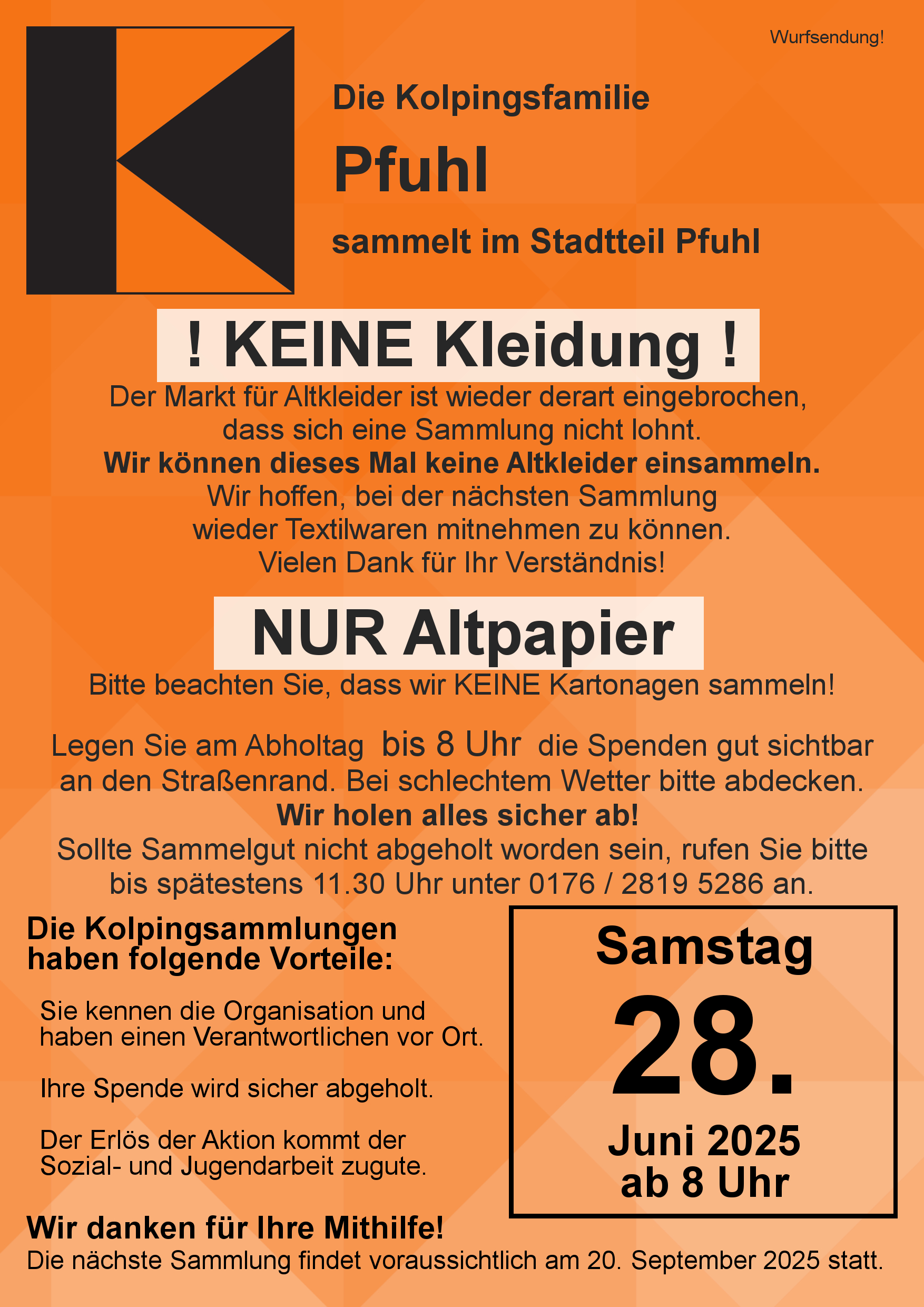 Kolping Pfuhl: Altpapiersammlung