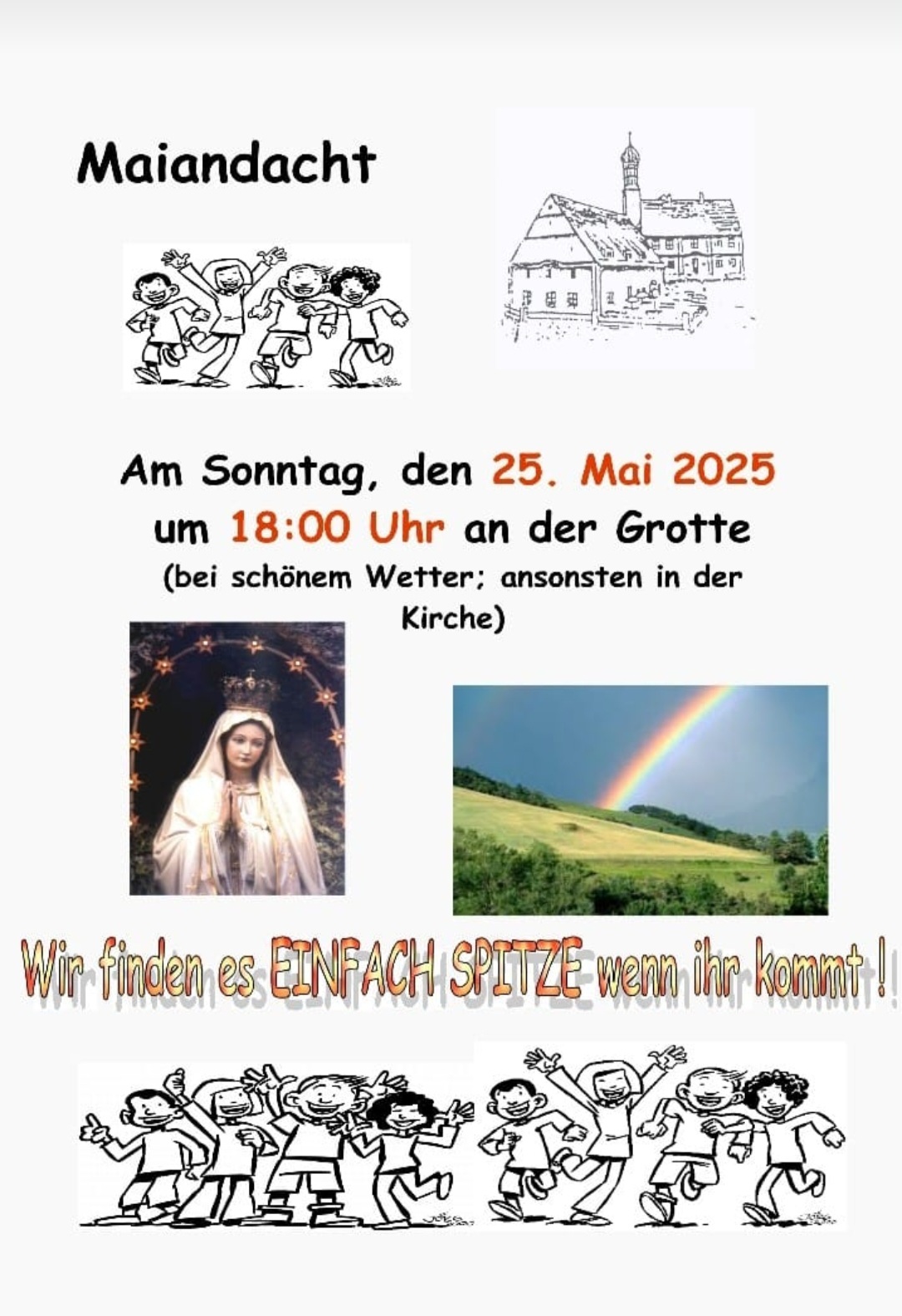 Maiandacht für Kinder in St. Mammas Wann So.. 25.05.2025 18:00 – 18:45 Zum Kalender hinzufügen ICS herunterladen Google Kalender iCalendar Office 365 Outlook Live Wo St. Mammas St.-Mammas-Weg 16, Neu-Ulm, 89233