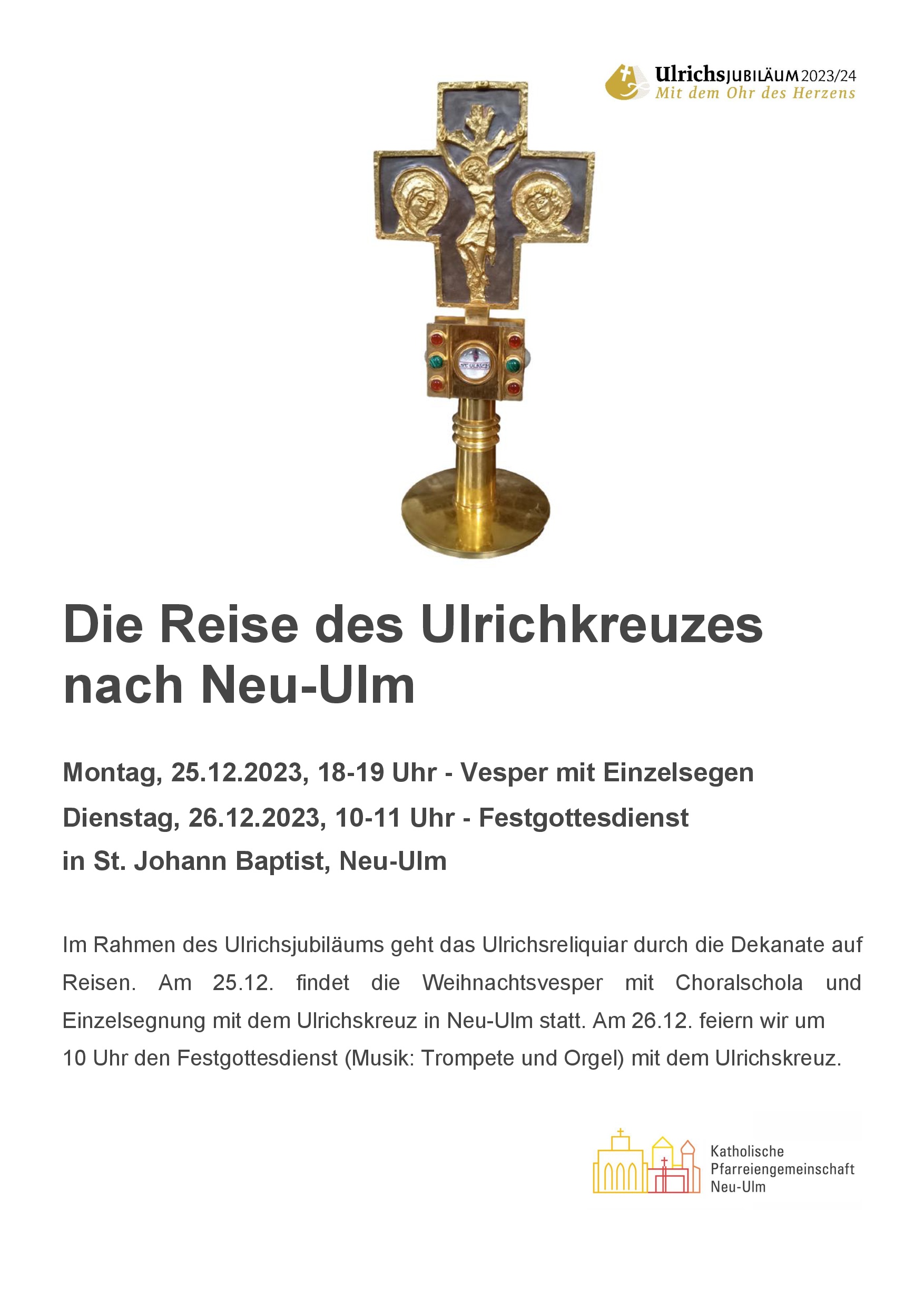 Weinachtsvesper mit Choralschola und Einzelsegen mit dem Ulrichskreuz