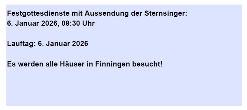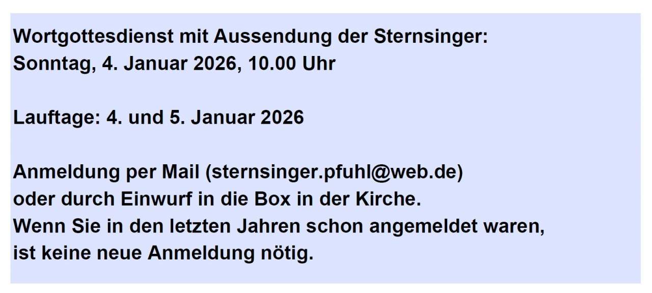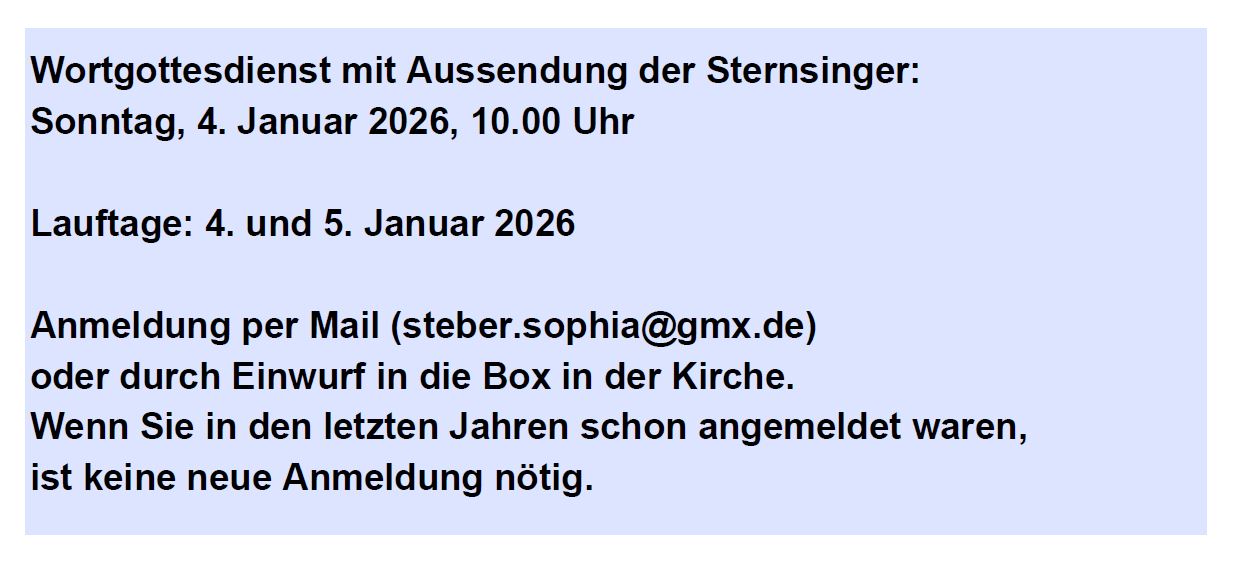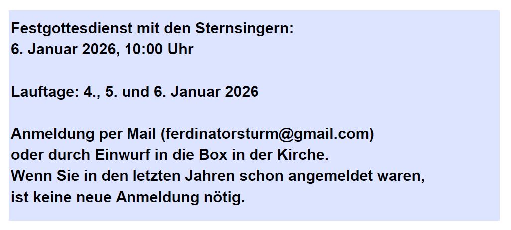 Die Termine hierfür entnehmen Sie bitte aus den aktuellen Gottesdienstzeiten.