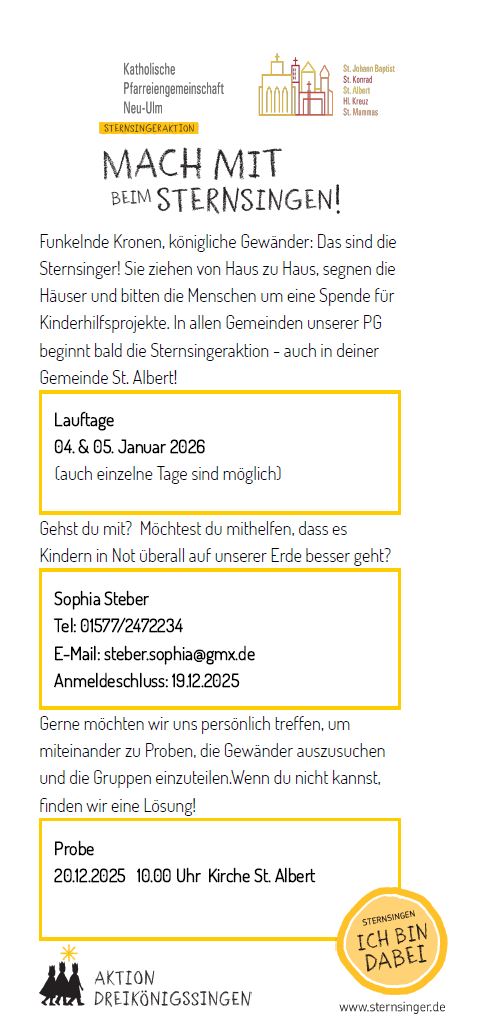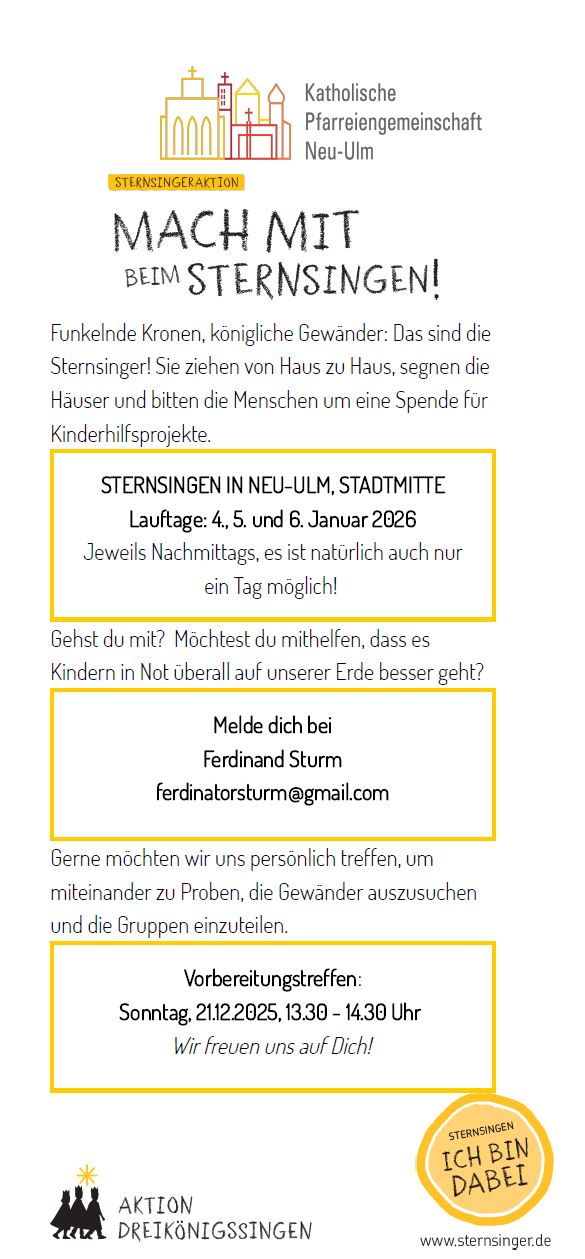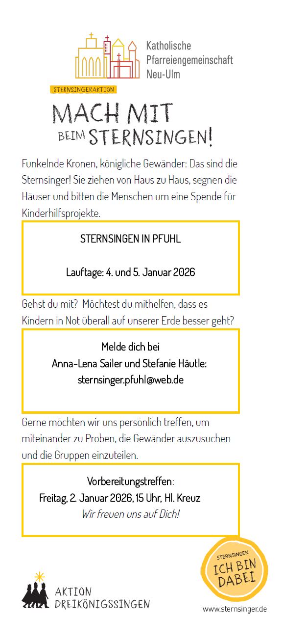 Melde dich einfach gerne per E-Mail an: pg.neu-ulm@bistum-augsburg.de